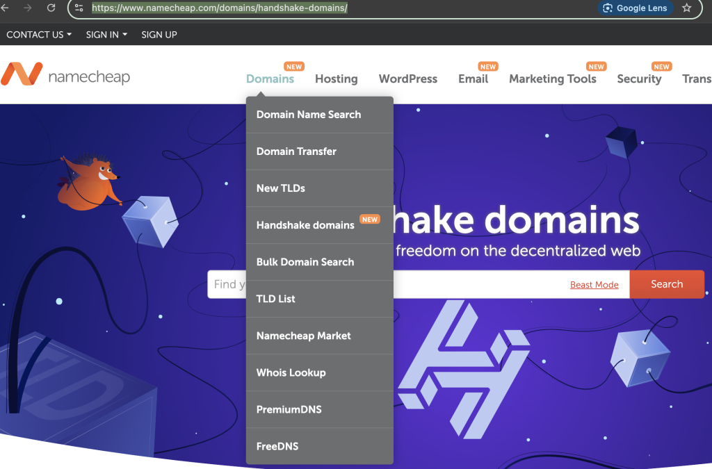 Handshake domain purchase (technically SLD purchase) was gated by NameBase.io, which was the community place used to register these domain names, and only certain browsers or plugins were needed to be able to view the names. For instance, this blockchain project would allow one to go to https://SEOSmooth (A “SLD”) and get to this website instead of https://SEOSmooth.com (.com being a “TLD”). There is much nonsense ICANN red tape involved due to security, (and HOSTS file defaults that ship with PCs and other internet devices); otherwise, the entire internet would be able to use and utilize this. Eventually later on, NameBase got purchased by NameCheap, a leader in Internet Domains that we are proud to use ourselves, and they set up Handshake/Namebase (HNS) names to be purchased directly on Namecheap, right under their main domains menu and normal TLD domain selections.